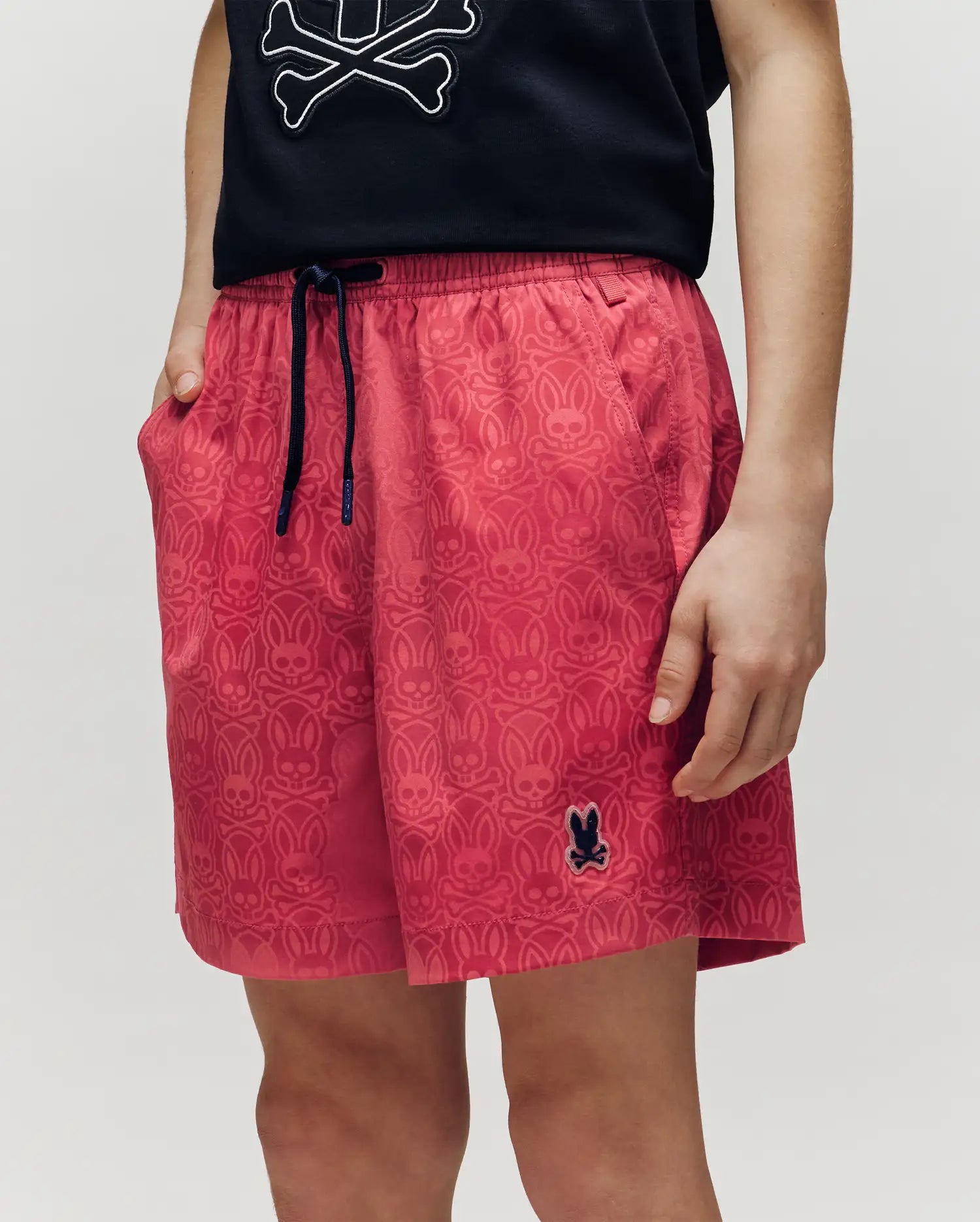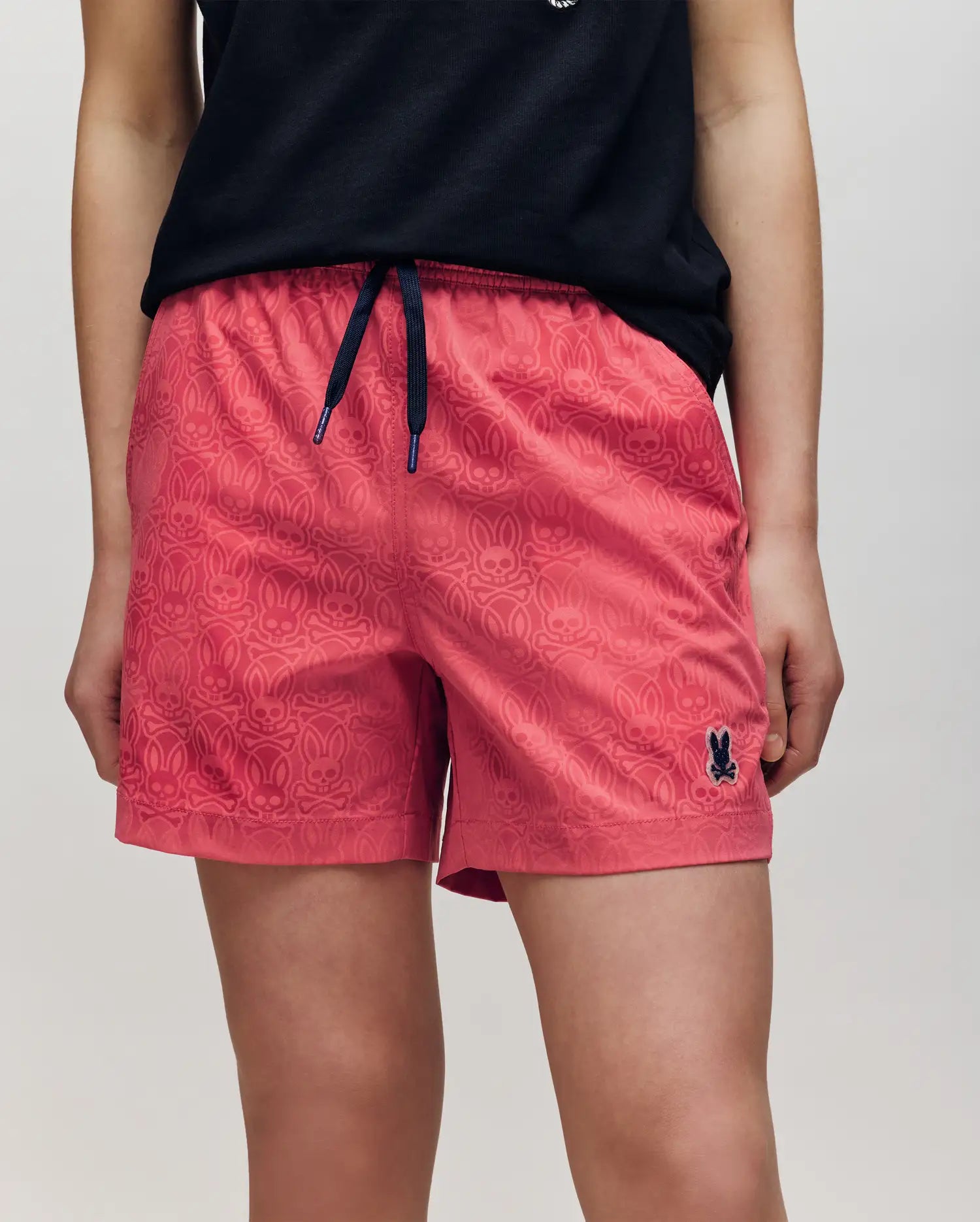 The Samos swim trunk features hydrochromic technology. which reveals a hidden Bunny pattern when the shorts come in contact with water. Mesh lining and a drawstring-stretch waistband allow for next-level comfort. Waterproof bag included in back pocket.